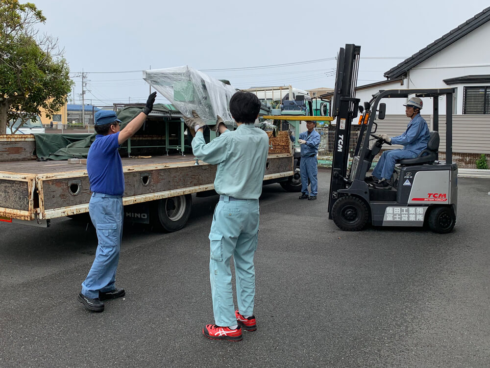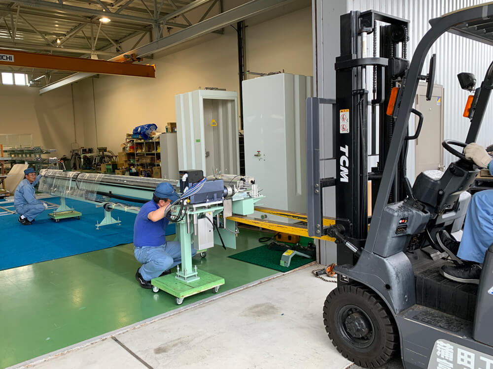 ものづくりのレベルアップを望んでいるエンジニアリング部では、この新装置の導入をとても楽しみにしていて、装置到着日にはスタッフ総出で早朝から作業に取り掛かりました。