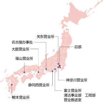 | 分店 | 关东营业所 埼玉县三乡市彦川户1-298-3 神奈川营业所 神奈川县相模原市南区古渊3-2-1 富士营业所 静冈县富士市五贯岛352-1 静冈西营业所 静冈县榛原郡吉田町片冈23-1 名古屋办事处 名古屋市中村区森末町3-96 大阪营业所 大阪府东大阪市横枕西11-17 福山营业所 广岛县福山市大门町4-14-17 熊本营业所 熊本县熊本市东区户岛5丁目16-47 |