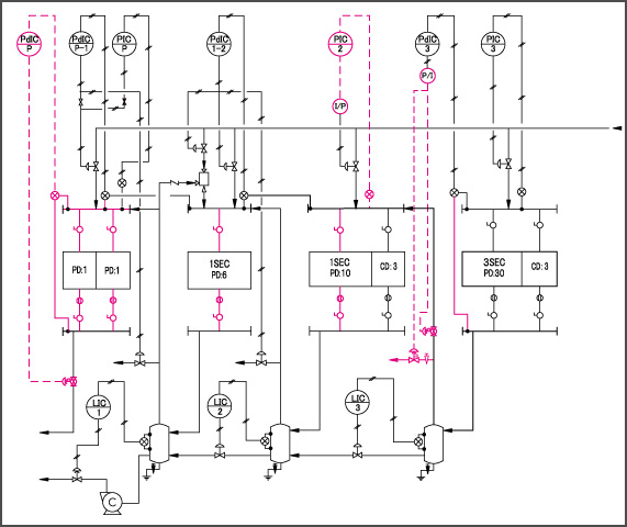 一般的にドレネージシステムとは、ドライヤーシリンダーへの蒸気の供給と紙乾燥の為の熱を奪われた蒸気がドレンになり、その排出をスムーズに行う一連の装置の事です。