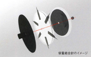 容量結合方式の放電針を採用。