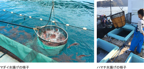 当組合では、ブリ、ハマチ、マダイを中心にシマアジ、スズキ、ヒラメ、カンパチなどを養殖し、多くは活魚として出荷、一部を自ら運営する加工場で切り身などに加工して出荷しています。